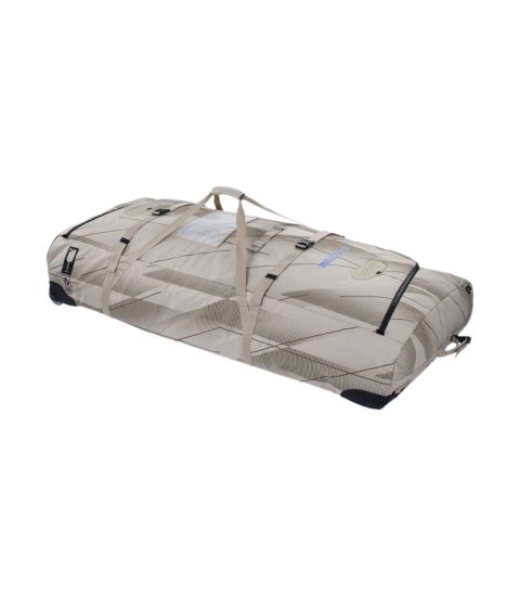 Die Tasche ist aus robustem, recyceltem Material gefertigt und mit Rollen, verstärkten Ecken und Belüftungsöffnungen ausgestattet, damit die Ausrüstung trocken und geschützt bleibt. Ein komfortabler Griff und ein Schultergurt sorgen für einen einfachen Transport, egal ob Sie auf dem Weg zum Strand oder zu Ihrem nächsten Spot sind.